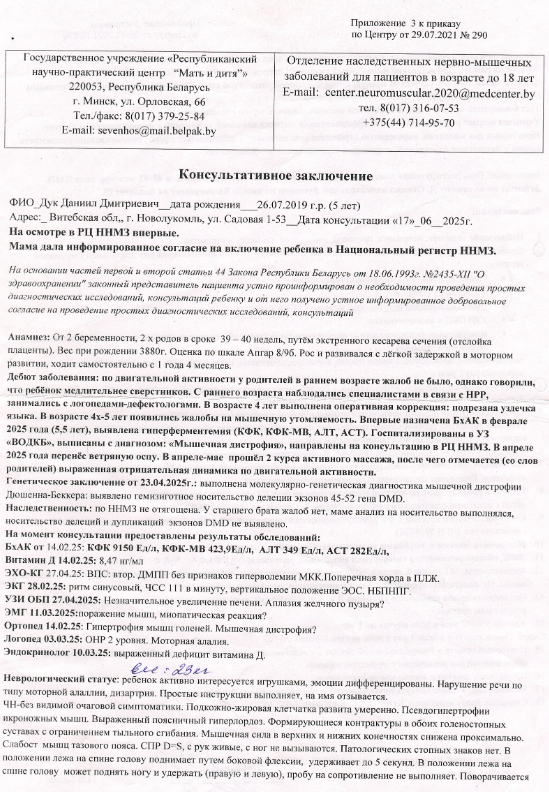 Наш сын, Дук Даниил Дмитриевич, 26.07.2019 года рождения, страдает от тяжелого заболевания – Мышечная дистрофия Дюшенна-Беккера.