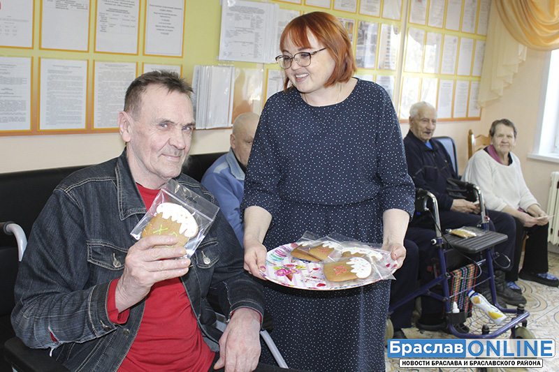 Красивые и вкусные пряники в форме кулича, соответственно украшенные — с белоснежной глазурью, разноцветной посыпкой и буквами традиционного пасхального приветствия, стали не только напоминанием о Воскресении Христовом, а и ценным знаком внимания, возможностью разделить праздничную радость и почувствовать частичку домашнего уюта и тепла. Недаром обитатели пансионата с благодарностью принимали подарки, некоторые — даже со слезами на глазах.