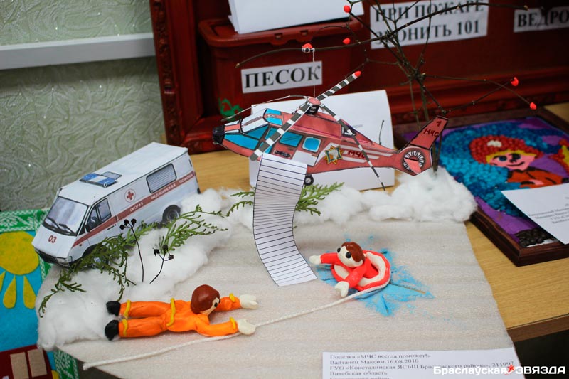 — Штогод на Браслаўшчыне праводзіцца рэспубліканскі агляд-конкурс дзіцячай творчасці «Ратавальнікі вачыма дзяцей», — расказвае інспектар РАНС Вадзім Чэкан. — Такое творчае спаборніцтва ўжо стала традыцыйным і многім прыйшлося даспадобы. Галоўная яго мэта застаецца нязменнай — папярэджанне пажараў і гібелі людзей ад іх, папулярызацыя прафесіі ратавальніка, прапаганда бяспекі жыццядзейнасці і, вядома, развіццё творчых здольнасцей нашых навучэнцаў.