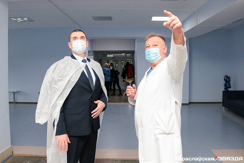 Главный врач Браславской ЦРБ Александр Макаревич провел для руководителя района своеобразную экскурсию и по стационарным отделениям. Одни из них уже отремонтированы и соответствуют современным стандартам, в других пока идут работы, третьи еще в ожидании. В целом же вся данная работа имеет одну общую цель – сделать процесс оказания медицинской помощи более комфортным, причем как для пациентов, так и для персонала. Председатель райисполкома, кстати, активно общался и с теми, и с другими.